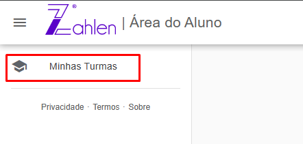 Após fazer login no Zahlen, você estará na página inicial. No menu superior esquerdo, clique em “Minhas Turmas” para acessar a tela de turmas.