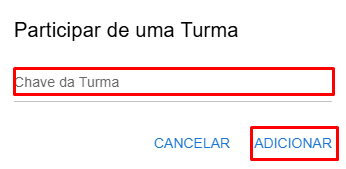 Dica: Se você tiver dificuldades em encontrar a chave da turma ou se o código estiver inválido, entre em contato com o professor para obter o código correto.